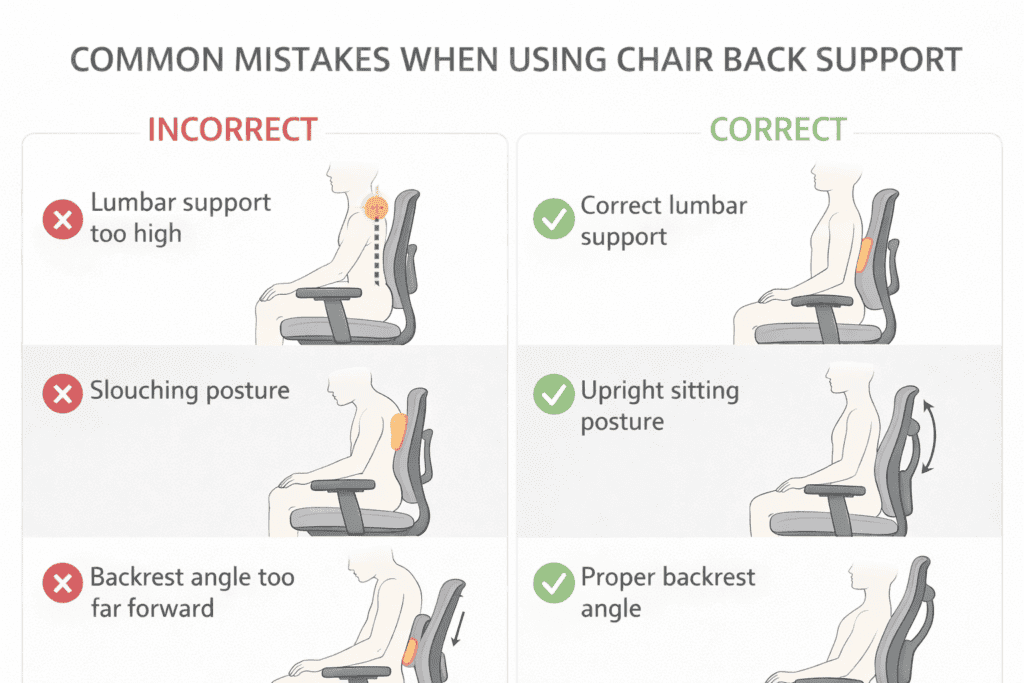 Ergonomic chair back support is meant to help maintain natural posture, but it does not work in isolation. Many people experience discomfort because back support is used incorrectly or without proper seat height and movement. When back support is too firm or positioned incorrectly, it can increase pressure instead of reducing it.