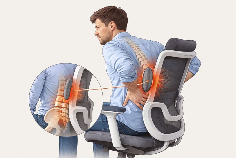 If lumbar support is too high, too firm, or pushed too far forward, it can force your spine into an unnatural position. This increases pressure on the lower back muscles and can cause soreness or pain after prolonged sitting.