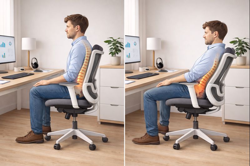 If the seat is too deep, the backrest cannot adequately support your spine. This often causes people to slide forward or slouch, increasing strain on the lower back.